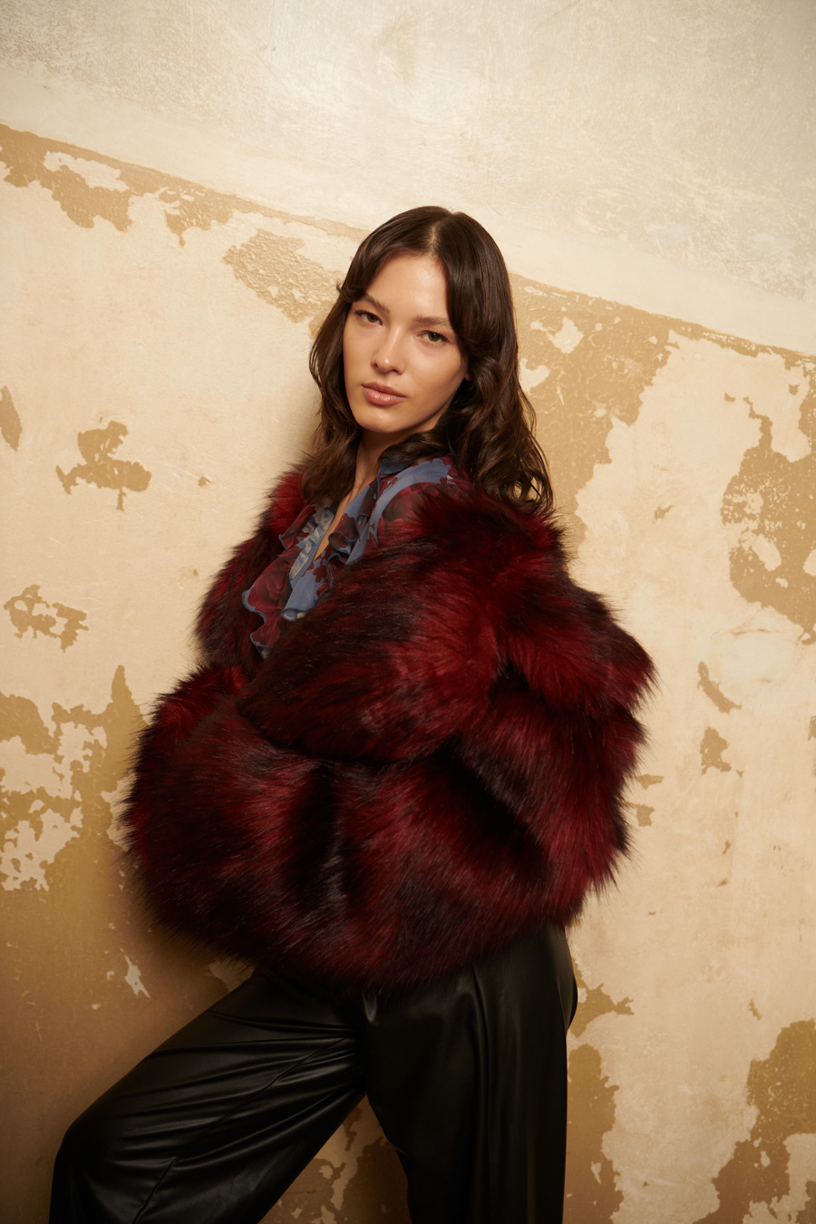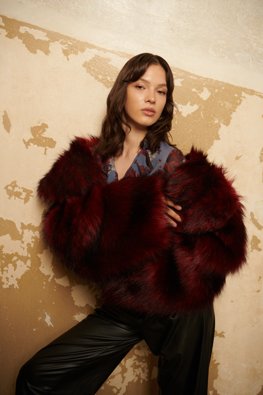 Ένα statement κομμάτι που συνδυάζει στυλ και αυτοπεποίθηση, γιατί ο χειμώνας θέλει χρώμα και attitude. Η cropped Wine Eco Fur σε εντυπωσιακή μπορντό απόχρωση με κόκκινες ανταύγειες χαρίζει αμέσως λάμψη και δυναμισμό σε κάθε εμφάνιση. Η μοντέρνα κοντή γραμμή της αναδεικνύει τη μέση, δημιουργώντας ένα θηλυκό και κομψό αποτέλεσμα, ιδανικό τόσο για καθημερινές chic εμφανίσεις, όσο και για πιο βραδινά looks.